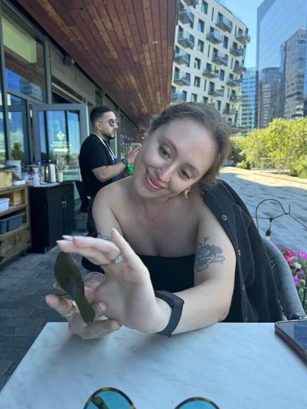 Other diners watched in awe, amazed by the unusual bond unfolding before them. It wasn’t every day that a wild bird decided to nap in someone’s hand inside a restaurant. For Scarlet, though, it was more than just a cute encounter — it was exactly what she needed.
