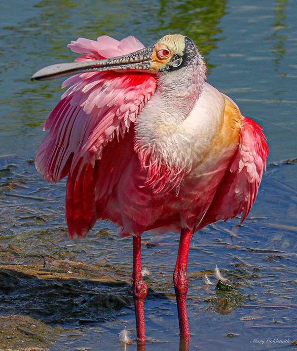 What began with a single pink feather floating into her yard has grown into an ongoing fascination for Mary Goldsmith. Each time she sees a roseate spoonbill, she feels a renewed sense of awe and connection to her new home.