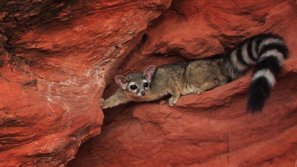 The ringtail, despite being Arizona’s official state mammal, is a phantom. A well-kept secret of the Sonoran night. While often mistaken for a cat or a fox, it is actually a member of the raccoon family, a creature perfectly designed for a life lived in shadow. Their most striking feature is, of course, the magnificent, fluffy tail, often longer than their body, which they use for balance as they navigate rocky cliffs and canyons with breathtaking agility. Their other defining characteristic is a pair of enormous, dark eyes—two polished orbs designed to drink in the moonlight, granting them superb night vision and an undeniably adorable appearance. They are, by nature, deeply shy and reclusive, creatures who avoid humans at all costs. To see one at all is a gift. To see one in the daylight, just a few feet away, is nothing short of a miracle. Hurst, who had only seen one once before in her countless hikes, knew she was being granted a rare and precious audience with the ghost of the desert.