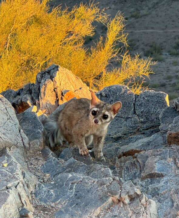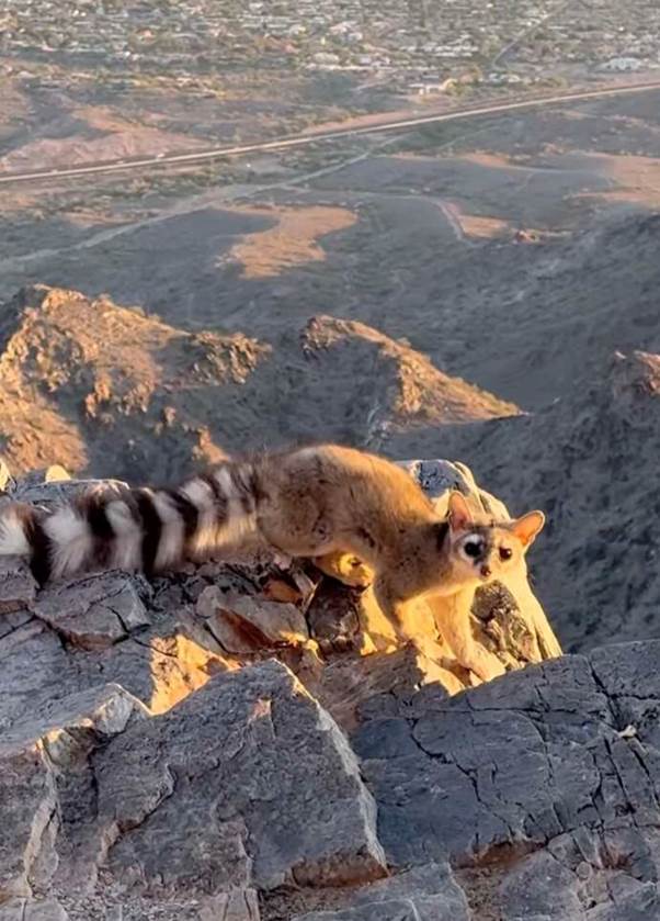 For a dedicated hiker, a familiar trail becomes a kind of moving meditation. The rhythm of your boots on the dirt, the familiar twist of the path, the way the light hits a particular rock at a certain time of day—these are the details that build a deep and personal relationship with a place. For Jacqueline Hurst, Phoenix’s Piestewa Peak is just such a place. Having hiked its trails nearly a hundred times, she thought she knew its secrets. But on a recent early morning hike, just as the sun was beginning to cast its golden glow over the desert landscape, the mountain decided to share one of its most precious secrets with her. It began as a flicker of movement in her peripheral vision, a subtle disturbance among the rocks and shrubs that could have easily been missed. She paused, her senses on alert. And then, she saw it. “I saw that unmistakable beautiful tail,” Hurst said. It was the iconic, black-and-white banded tail of a ringtail, a creature so elusive it feels more like a myth than a mammal. The heart of an experienced hiker and nature lover skipped a beat.