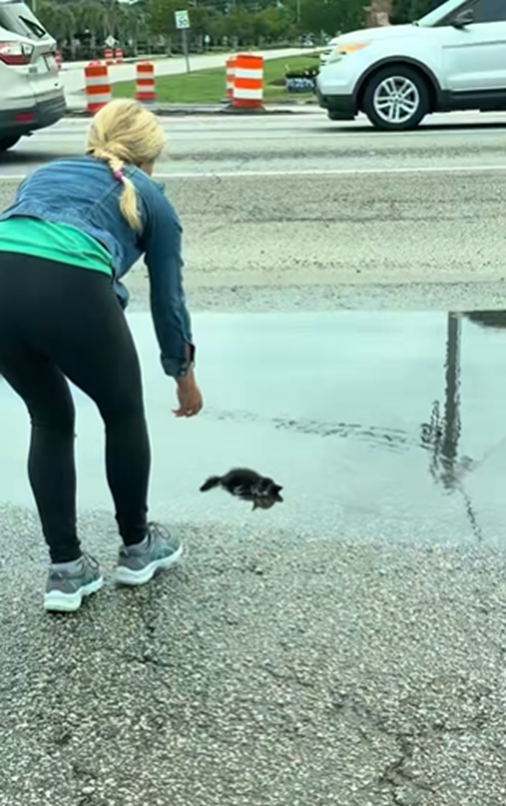 On Mother’s Day, a man and his wife were driving when something unusual caught their attention. On the side of the road, half-submerged in a shallow puddle, they noticed what looked like a small ball of fur. At first, it almost seemed lifeless as cars rushed past, unaware of the tiny creature’s presence. But instead of ignoring it, the couple decided to stop and investigate.
