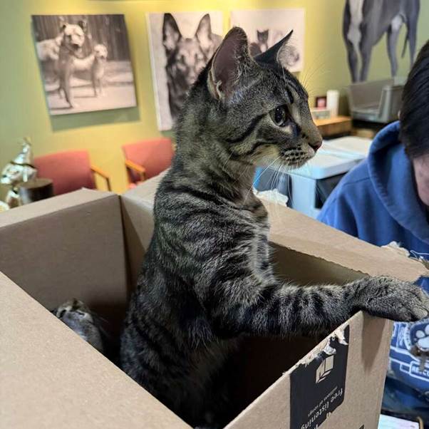 The two cats were lovingly named Amazon and Prime, a nod to their unexpected cardboard “delivery.” It didn’t take long for the staff to see that the brothers were affectionate, social, and eager to embrace human companionship.