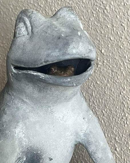 The tiny amphibian had apparently crawled inside, perhaps seeking shelter after Florida’s summer rainstorms. The ceramic frog, hollow inside, had transformed into a surprisingly perfect little hideaway.