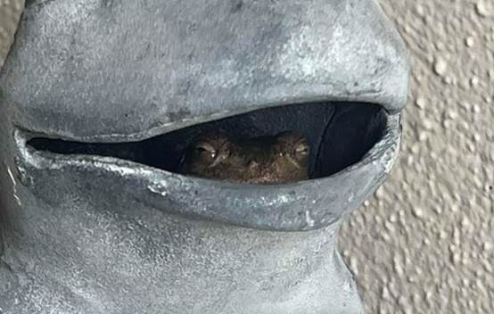 Neighbors and friends who saw the picture Cassidy snapped were equally amused. Many joked that the frog had simply “found his twin” or that he was moving in with family. Others commented on how nature has a way of blending into everyday life in the most unexpected, delightful ways.