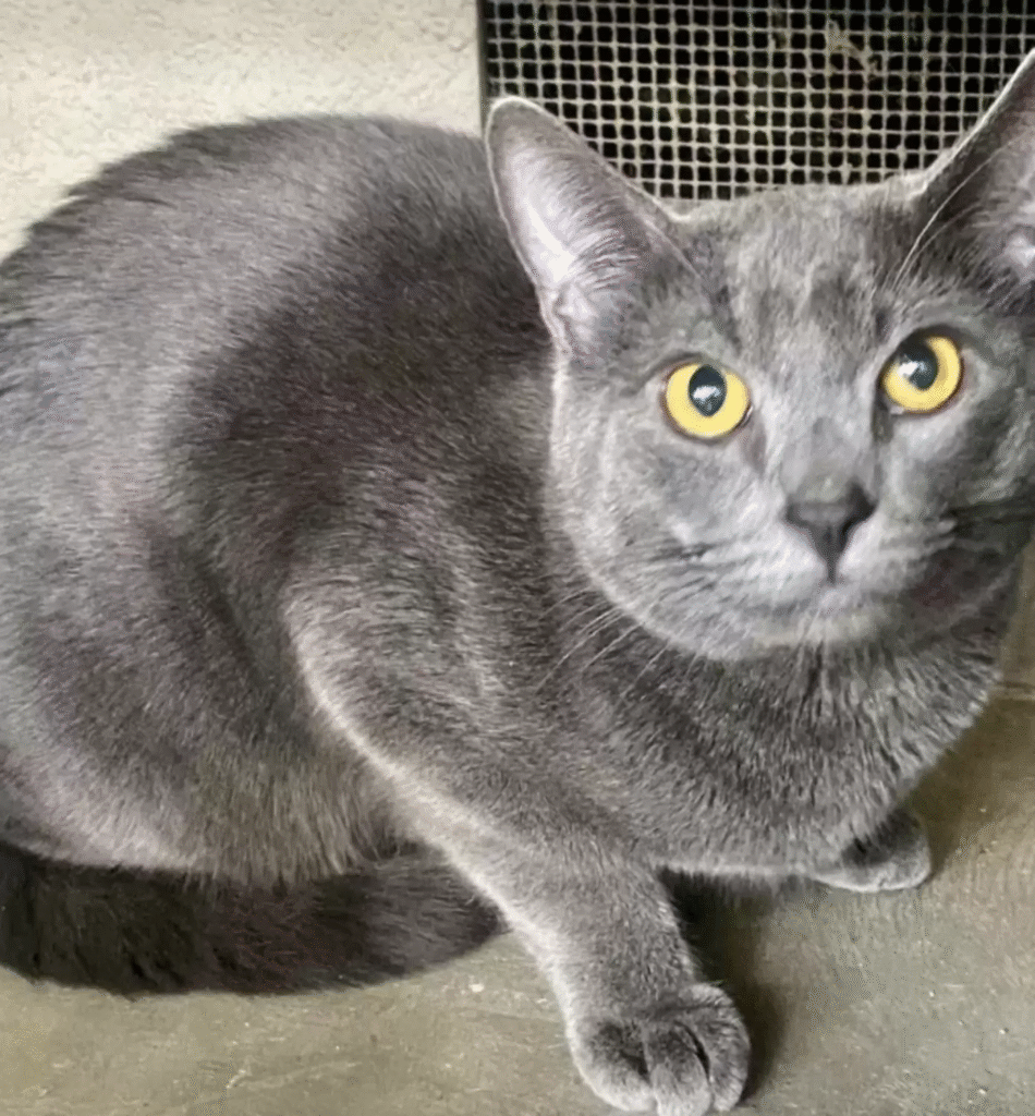 In Northridge, California, a heartbreaking sight left a group of neighbors stunned. Nestled inside a small cage in a quiet park sat a gray cat, his wide golden eyes staring out through blue-painted bars. He had no blanket to curl up on and no companion to comfort him. All that sat beside him was a single can of wet cat food and a sheet draped loosely over the cage for shade. Taped to the front was a note that read only two words: “Free cat.”