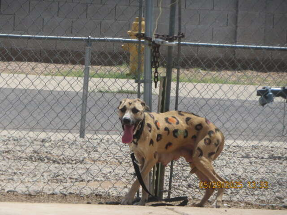 Investigator Finds Dog Tied To Fence In Hot Sun — And Covered In Leopard Spots