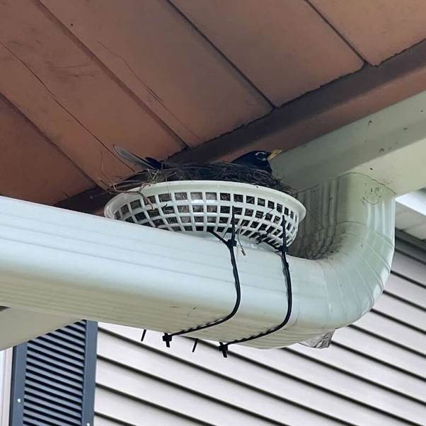 With care, the couple fastened the fry basket securely to the drainpipe where the robin had been attempting to nest. It wasn’t fancy, but it was practical — and it gave the robin something she had lacked all along: a solid foundation.