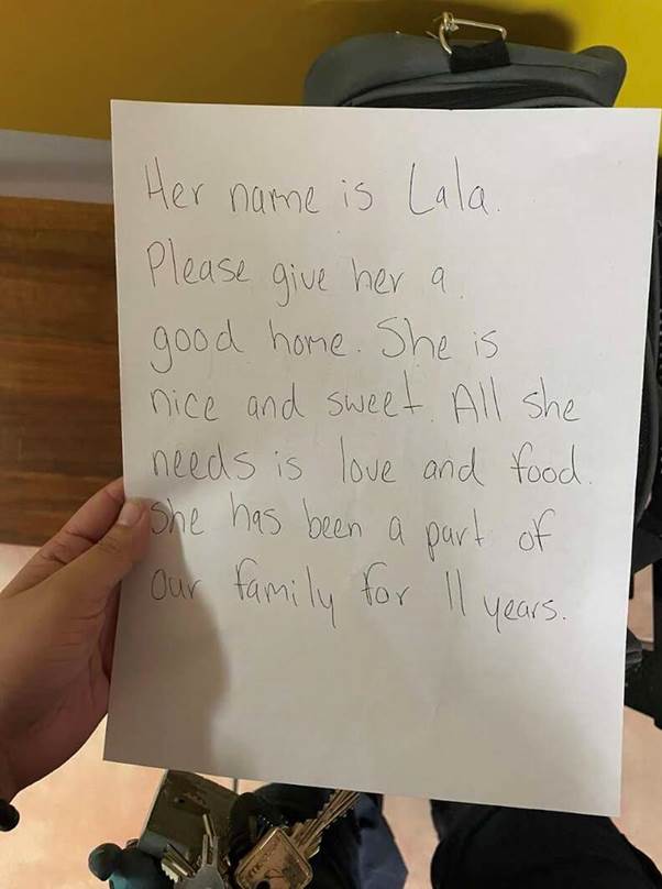When the shelter staff arrived the following morning, the sight of the solitary carrier was, unfortunately, not an entirely unfamiliar one. But as they drew closer, the scene became infinitely more poignant. Taped to the door was a handwritten note, a final, gut-wrenching message from the family she had loved for over a decade. The words were a paradox of love and abandonment: “She has been a part of our family for eleven years… All she needs is love and food.”
