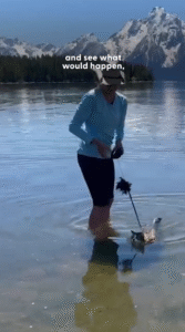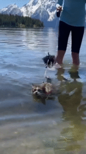 To satisfy the creature’s profound and lasting wonder, Her guardian decided upon a bold, real-world experiment. They ventured toward a majestic lake, vast and serene. Snow-capped mountain peaks dominate the distant horizon. A decision was made to simply observe what might transpire. The woman wades into the cool, clear shallows. She is clad in practical attire for this outdoor test. The cat, secured by a leash for safety, follows suit. This initial foray into the immense body of water is tentative. Bao Zi’s paws disturb the glassy surface, creating ripples. Her reaction to this new environment was the big question. Would she embrace this grand-scale version of a bath? The scenery provides a stunning backdrop for this trial. An immense landscape frames this personal moment of discovery. This is a crucial juncture in her aquatic education. The leash ensures the animal remains safe during the test. They are seeing what her response would be to this immersion. This is a pivotal moment of truth for the water-loving pet. Her lifelong curiosity has led to this beautiful location. The grand experiment is officially in progress.The outcome of this venture was, at first, unknown. They are testing a hypothesis about her aquatic affinity. The cat takes her first steps into a much larger world. This cautious entry marks a significant milestone. The majestic setting elevates the importance of the event. They are exploring the boundaries of feline capability. This gentle trial run will determine future adventures. Her reaction is being carefully gauged. The great outdoors becomes a place of learning. A pet’s preference is being ascertained in the wild. This expedition is a turning point in her story.