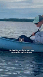 The scope of their shared explorations expands further. Now, we see Bao Zi nestled comfortably in a kayak. She is a willing and eager passenger on this voyage. The cat peers out from her spot at the bow. Her owner paddles them across the calm, gray water. This illustrates a mixture of passions at play. She loves the thrill of these grand adventures. Her partnership with her human is one of trust. The blue boat cuts a smooth path through the lake. Her little head is the only part of her visible. She is the tiny captain of this two-person vessel. This activity combines her love of water with exploration. She is an essential part of these outdoor excursions. The bond between pet and person is clearly strong. She is a true companion on these aquatic journeys. Her presence makes the experience even more special. They are a team, navigating the wilderness together. Her adventurous spirit is perfectly suited for this life. She is content to be ferried across the open water. This scene epitomizes their shared love for the outdoors. She is an integral member of the expedition team. The cat’s adaptability is showcased once again. She is always ready for the next exciting escapade. Her calm demeanor makes her an ideal travel mate. They are creating unforgettable memories on the water. This is just one of many journeys they will take. Her enthusiasm for adventure is boundless. The kayak provides a new perspective on the world. She is a seasoned sailor in her own right. This tranquil moment on the boat is picture-perfect. They are partners in discovery and exploration. Her love for adventure is a key part of her identity. She is a cat built for movement and new horizons. This is the life of a truly exceptional feline. Their shared passion for the wild is evident.