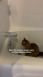 Within the stark white confines of a porcelain basin, A fluffy cat named Bao Zi commences her exploration. This creature has perpetually harbored an immense curiosity. Her interest regarding water is a noted characteristic. She positions herself inside the empty bathtub’s expanse. Her small frame seems dwarfed by the ceramic surroundings. The metallic gleam of the faucet captures her attention. It stands like a silver sculpture in this sterile environment. Her gaze is one of profound, unwavering concentration. She investigates this fixture with an analytical stare. This domestic setting serves as her preliminary laboratory. Here, the fundamental properties of liquids are pondered. A long-held inquisitiveness propels her actions. She is a four-legged scholar on a scientific quest. The origins of a great adventure often start simply. This quiet moment of inspection is quite telling. It foreshadows a future filled with unique pastimes. Her innate wonder is the driving force behind everything. She sniffs the air around the spout, gathering data. This is a foundational experience, a point of departure. The bathroom transforms into a zone of discovery. Her fluffy tail is a soft counterpoint to the hard surfaces. The potential for excitement begins in this tranquil spot. A deep-seated fascination is clearly at play. She is contemplating the mysteries of H2O. This particular feline possesses an unusual penchant. Her journey toward aquatic prowess starts right here. We are witnessing the beginning of an amazing saga. The seeds of future travels are sown in this tub. A cat’s singular obsession is put on display. This image documents the start of her special calling. Her destiny is intrinsically linked to this element. A remarkable odyssey is about to get underway.