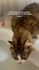 Whenever her human companion, Hélène, decides to bathe, This devoted feline maintains a dutiful, proximate watch. She perches gracefully upon the very precipice of the tub. Her posture is one of vigilant, focused observation. The fluffy animal leans forward, peering intently below. Her head tilts, studying the soapy water’s surface. A bottle of Dove body wash stands nearby, unnoticed. Her entire being is concentrated on the bathing activity. This consistent ritual highlights her unwavering interest. She is a constant, furry spectator to these ablutions. Her proximity to the water is both bold and careful. She never fails to assume her customary position. This habit is a testament to her aquatic fixation. Her blue eyes are fixated on the ripples and foam. The scene depicts a shared, albeit unusual, routine. Her presence is a predictable part of bath time. She is completely absorbed by the proceedings. The cat’s persistent surveillance is quite remarkable. This behavior demonstrates her deep-seated fascination. She is the silent guardian of the sudsy domain. Her intense look conveys a world of thought. This ongoing pattern of conduct is very revealing. The animal’s dedication to this practice is absolute. She is a furry sentinel, ever present and alert. Her quiet companionship is a constant during soaks. This image captures her typical observational stance. She remains captivated by the mysteries of the bath. Her unwavering gaze never leaves the water. This repeated action shows the depth of her fixation. She is a permanent fixture during these cleansing rites. Her commitment to watching is truly exceptional. This peek into their life shows a unique bond.