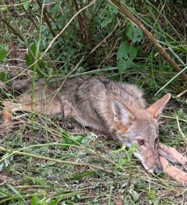 On an ordinary afternoon in Louisiana, a woman walking her dog came across a heartbreaking sight. Lying motionless in the grass was an animal that at first looked like she might already be gone. Covered in mosquitoes and too weak to even lift her head, the creature seemed to be at the end of her strength. But when the woman looked closer, she realized the animal was still alive — a fragile, struggling coyote in desperate need of help.