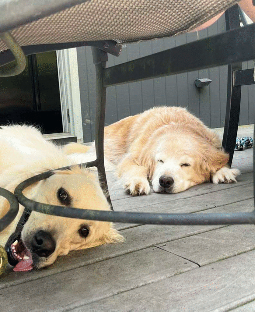 At Pups at Play, a lively doggie daycare in Montclair, New Jersey, excitement is everywhere — barks, wagging tails, and playful chaos. But not every pup wants to be in the middle of it all. Theo’s older sister, Mia, is 12 years old and has slowed down a bit in her senior years. On this particular day, she chose to rest quietly in a corner, away from the energetic crowd.