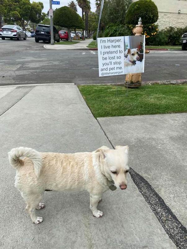 “I’m Harper. I live here. I pretend to be lost so you’ll stop and pet me.”