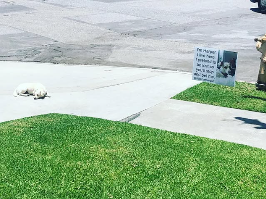 Her owners allow her to spend time in the front yard, where she waits patiently for passersby. But Harper doesn’t just sit quietly; she stages her little performance by sitting on the sidewalk with a hopeful expression, acting as though she has nowhere else to go. Neighbors and strangers alike stop in their tracks, worried she might be lost, only to realize they’ve been tricked into a petting session.