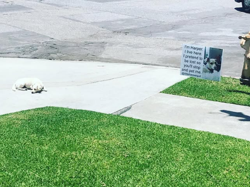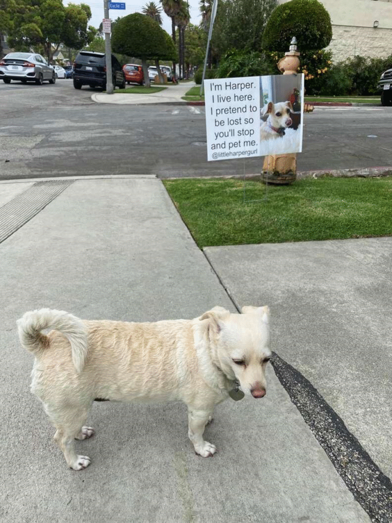 “I’m Harper. I live here. I pretend to be lost so you’ll stop and pet me.”