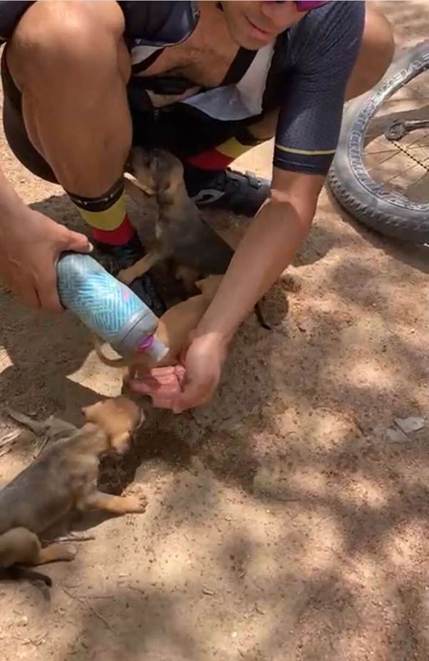 This was no accident. The isolation of the location and the deliberate nature of the hole told a story of chilling cruelty. “They were in a super remote place, far away,” Silva recalled. “Someone dug the hole and left them there to die. They were weak and couldn’t escape.” These were not just stray puppies; they were victims of a deliberate death sentence. For the two athletes, standing there in their cycling gear, the focus of their day shifted in an instant. The training ride was over. A rescue mission had begun.