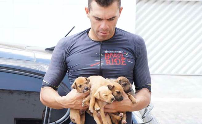 A professional cyclist’s training ride is a grueling meditation of endurance. It’s a world of focused breathing, the rhythmic hum of tires on pavement, and the burning sensation in one’s muscles. For Brazilian cyclist Thyago Costa Silva and his friend, a ride they took a few years ago through a remote stretch of countryside was supposed to be just that—a test of their physical limits. But on this day, their focus was broken by something that didn’t belong in the wild, rugged landscape: a faint, desperate sound. They slowed their bikes, and a small movement on the roadside caught Silva’s eye. There, in the dirt, was a crudely dug hole. As they peered inside, the heartbreaking reality of the situation came into focus. Huddled at the bottom were five tiny, helpless puppies.