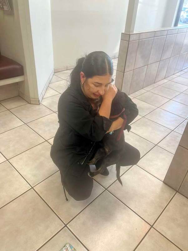 Marley’s family rushed to the pet hospital, their hearts pounding with anticipation. When his mom walked through the door, Marley froze for just a second, then his ears perked up in recognition.
