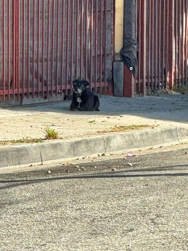 In a quiet neighborhood in Compton, California, two neighbors couldn’t help but notice a strange sight one afternoon. Wedged between two trash cans, what looked like a fuzzy black lump shifted slightly. Curious, they moved closer. To their surprise, the “lump” sprang to life — it was a tiny black dog, frightened and skittish, who bolted the moment he realized he had been spotted.