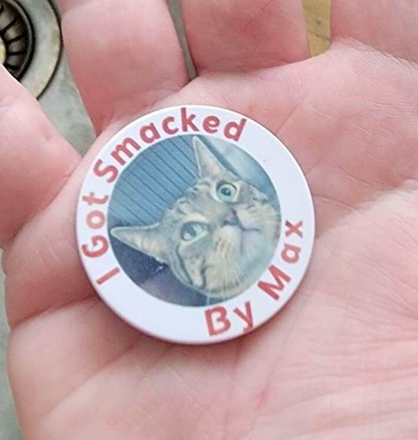 For the staff, Max’s antics are both amusing and endearing. In fact, they’ve leaned into the humor of it all, even creating commemorative pins for anyone who has the honor of being “smacked by Max.”