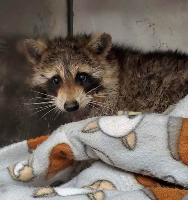 At Raven Ridge Wildlife Center, rescuer Tracie Young examined the raccoon. Miraculously, aside from being wet, chilled, and worn out, he had no serious injuries.