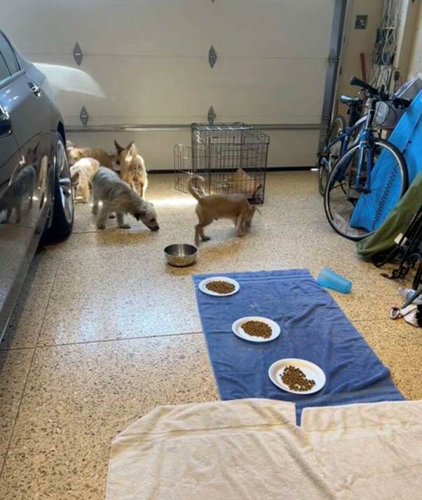 So, she made a decision. Carefully lifting the cage into her car, she brought all seven dogs home with her. For the first time, the dogs were free to stretch their legs and drink clean water. Some gobbled down food immediately, while others just curled up in relief.