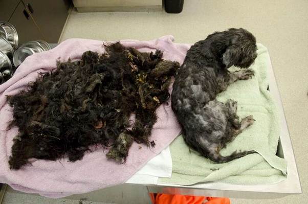 When the little dog arrived at the clinic, the veterinary team rushed to assess his condition, but they immediately hit a wall. His fur was such a solid, tangled shell that they couldn’t properly examine him, check his vitals, listen to his heart, or even find a vein to administer fluids. “We had to get the hair off of him,” Lochmann said. “It’s a real process when it’s that knotted up.”