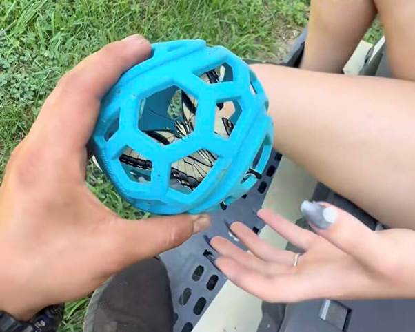 Backyards are familiar territories, places of quiet routine where we rarely expect to find true astonishment. But last month, in the middle of a perfectly ordinary day, Faith Black and her fiancé Alberto Navarro stumbled upon a small, breathtaking miracle. It all began with a simple, mundane act. Faith was walking through their yard when she spotted one of their dog’s old toy balls, a hollow, plastic sphere with small holes, half-hidden in the grass. It had been forgotten for ages, a relic of past games of fetch. As she bent down to pick it up and clear the lawn, she was stopped in her tracks. Peering out from within the translucent plastic was a tiny, perfect face staring right back at her.