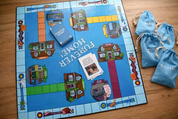 She rushed home with the blank board, her mind buzzing with ideas. She decided to model her creation after one of her favorite childhood games, “Sorry!”, where players race their pieces around the board, trying to be the first to get to their designated home base. But in Becca’s version, which she would call “Furever Home!”, the game would have a deeply personal and heartwarming twist. “The start is going to symbolize where each pet started before we adopted them,” Becca explained. “[And] the home you’re trying to get your game pieces to is going to be our literal childhood home, where they all got to live out their lives with us.” It was going to be more than just a game; it was going to be their family’s story, playable.