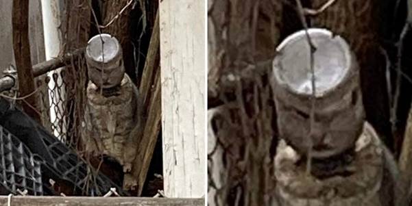 The glass jar, likely discarded as trash, had become a cruel and suffocating prison. The poor cat, in a moment of hunger or curiosity, must have stuck her head inside to get a last morsel of food, only for it to become hopelessly stuck. Now, she was blind, deaf to the world outside the echoing confines of the jar, and unable to eat or drink. She was a ghost in a glass mask, stumbling through a world she could no longer see, her time rapidly running out.