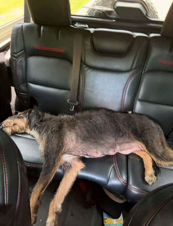 Once she knew her babies were secure, Sugar finally let herself relax. Curtis opened the back seat of her car, and the exhausted mama curled up inside. For the first time in what was probably weeks, she allowed herself to collapse in relief, drifting into a deep, well-deserved nap.