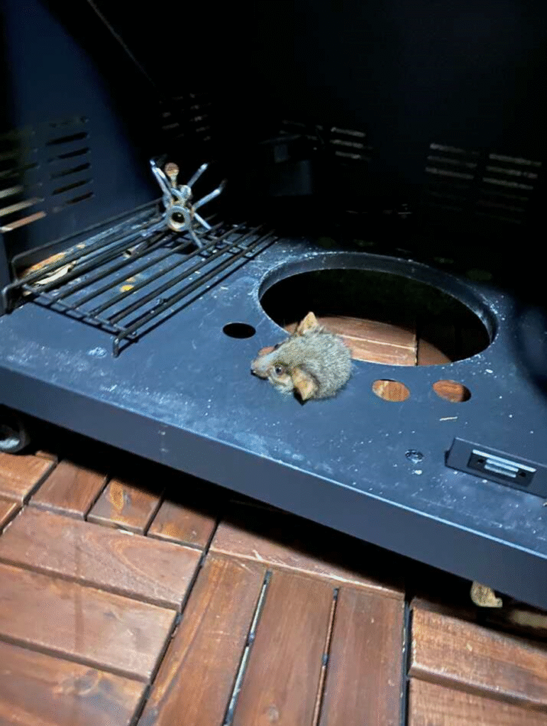 Once free, he didn’t run. He stood for a moment, unsteady on his small legs, his nose twitching as he took in the unfamiliar scents of the patio. He looked back at the gaping, dusty barbecue bowl that had been his cage, then up at the towering humans who had engineered his freedom.