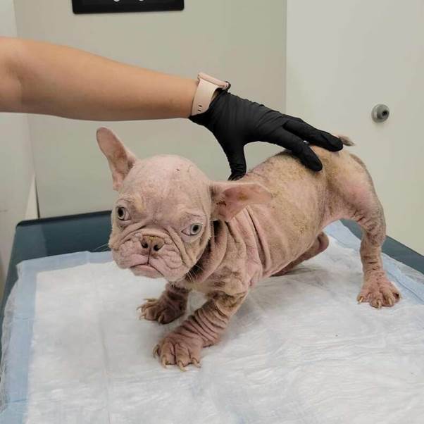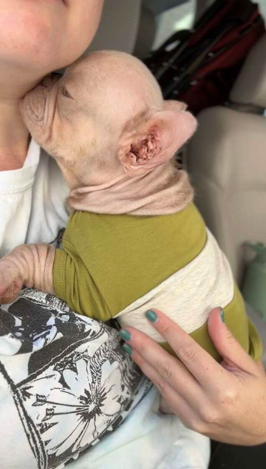 Harold’s condition wasn’t a natural trait. He wasn’t a “hairless Frenchie” as some might assume. Instead, he had suffered severe neglect in his earliest weeks of life. His skin had become inflamed and sore, leaving him exposed and vulnerable.