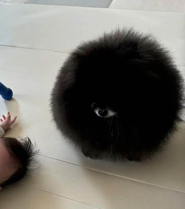 At first glance, it looks like something out of a surreal cartoon — a mysterious black orb with a single, glaring eye peering out from its center. Most people, upon seeing the image, assumed it was either a clever Photoshop trick or perhaps a teaser for a sci-fi film. But the truth is far more delightful. This puzzling “creature” isn’t a monster, an alien, or a digital illusion. It’s a tiny Pomeranian whose fluffy fur and unique features have made her one of the most unintentionally funny optical illusions on the internet.
