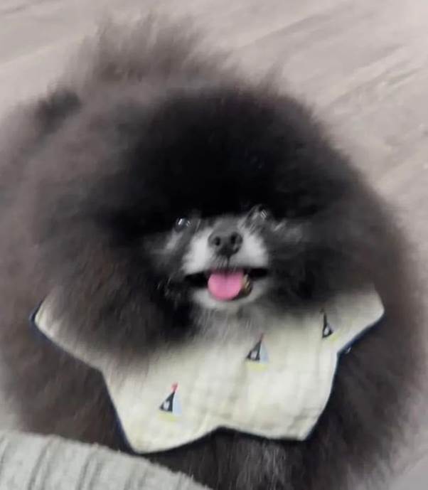 The now-famous pup first went viral after photos were shared online by Vinci DeLaunc, who posted snapshots of his brother’s Pomeranian. In the images, the small dog looks nothing like the classic fluffy, teddy-bear-like Pomeranian most people recognize. Instead, her jet-black fur forms a perfect, round silhouette. Against that dark background, her white snout appears like the shining sclera of a giant eyeball, with her nose forming the “pupil.”
