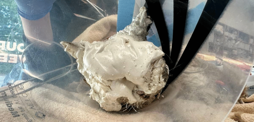 Dr. Vivian Lee, the lead emergency veterinarian, approached the small carrier. The animal, which they deduced was a cat from the visible outline, was immobile. Its breathing was shallow, and the foam covered nearly every inch of its body from the neck down, hardening instantly into a suffocating, plaster-like shell. Even the tail and paws were encased.