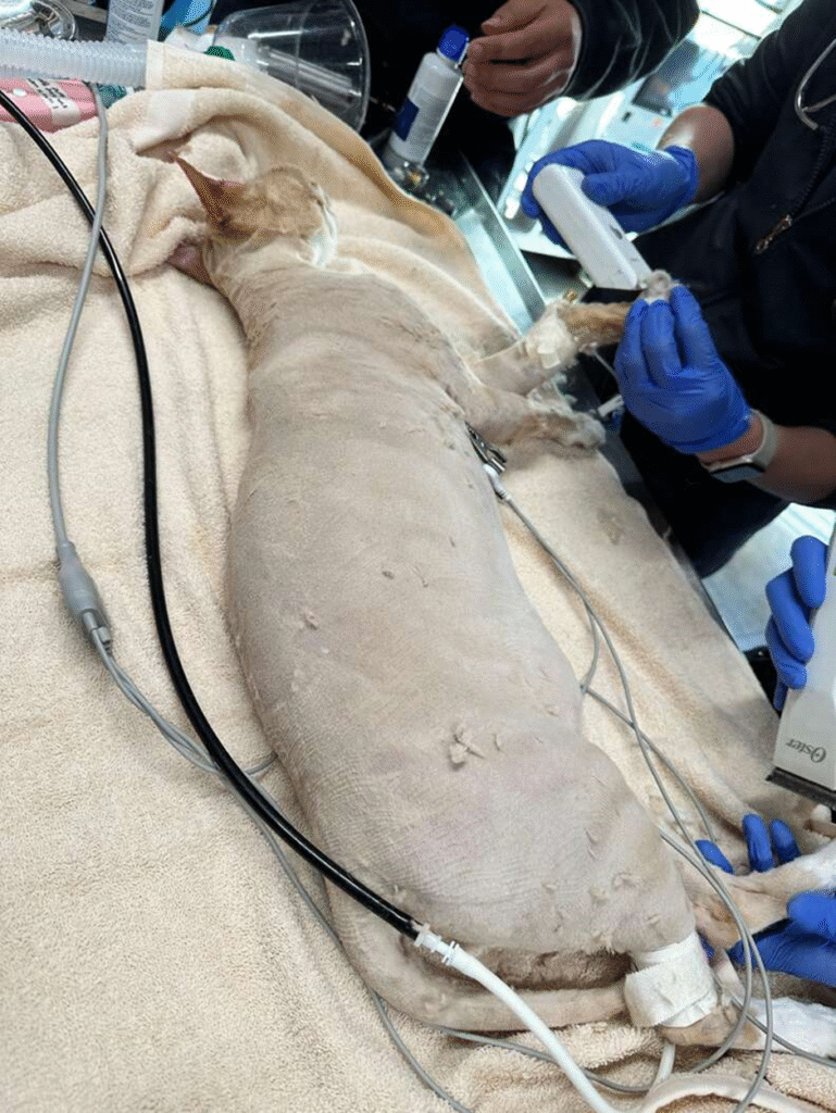 The immediate priorities were clear: stabilizing the cat’s temperature, administering fluids, and finding a way to safely dissolve the foam without causing chemical burns to the skin beneath. They started with a large-dose, high-fat emollient bath—the same kind used to remove stubborn tar, but applied with extreme caution.