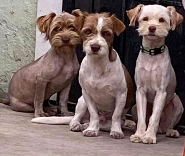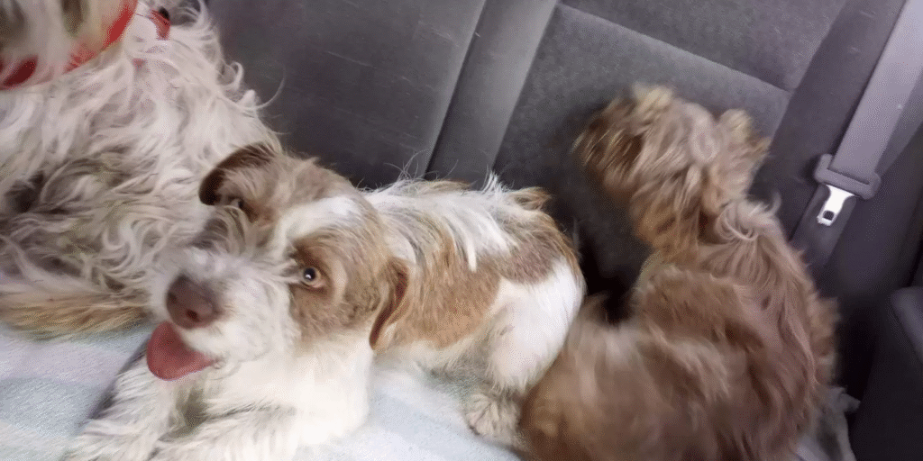 Once inside the van, the true extent of their neglect became painfully clear. Their coats were a landscape of painful, heavy mats, and their bodies were infested with ticks—each dog hosting 40 or more of the parasites. The discomfort must have been immense, yet their only focus was on being reunited. A rescuer took the little family home, and began the meticulous, compassionate process of freeing them from their physical misery. The matted fur was carefully shaved away, and with it, the ticks and the dirt of the streets. The relief was instantaneous. But the greatest comfort came later that evening, when the three clean, comfortable siblings immediately sought each other out, collapsing into a familiar, reassuring cuddle pile. It was here that Hall and her team saw the true nature of their bond. This wasn’t a temporary “street bond” forged for survival that would dissolve in safety. “These guys are definitely bonded,” Hall confirmed. “They cry if one goes outside without the other to go potty or anything.” This was the deep, soulful connection of a true family.