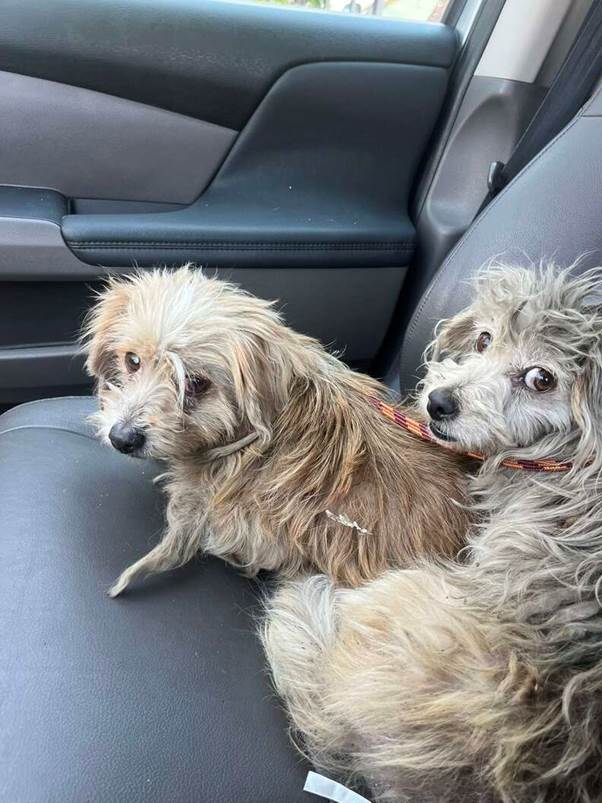 When Suzette arrived, the scene was just as heartbreaking as described. The two little dogs, later named Kimber and Pennies, were frozen in fear. While many of the dogs Suzette rescues are skittish and prone to bolting, this situation was different. These two were so terrified, so completely shut down, that they were like statues, stuck to their safe spot in the trash. “They were terrified. Frozen,” Hall wrote.
