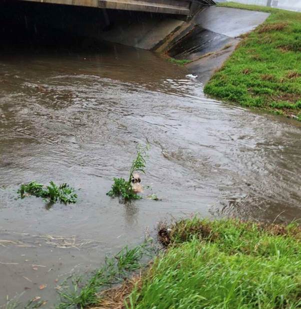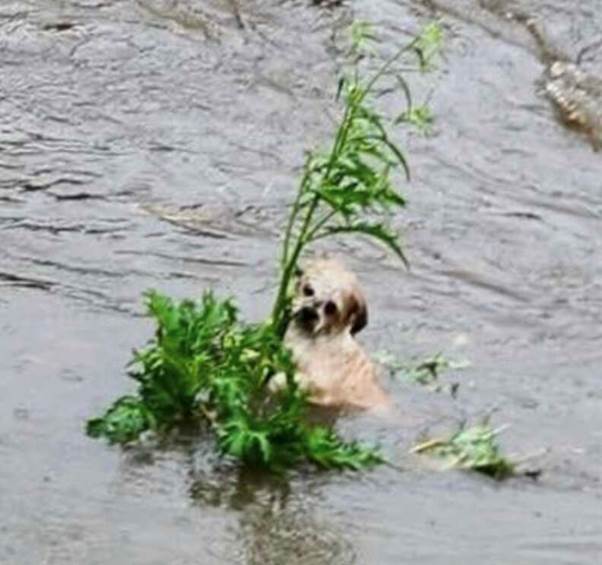 The murky waters of a Houston bayou, swollen and swift after recent rains, are not a place for miracles. They are a place of churning sediment and hidden dangers, a current that pulls relentlessly at whatever falls into its grasp. Yet, on a seemingly ordinary afternoon, against the backdrop of this indifferent force of nature, a tiny miracle was unfolding. It was a sight that could break your heart: a small, terrified face, barely visible amongst a fragile fortress of reeds, fighting for its life.This was Eddy. To call him a puppy doesn’t quite capture the sheer vulnerability of the scene. He was a mere ball of fluff, his fur matted and dark with the cold bayou water. Every muscle in his tiny body quivered, partly from the chill and partly from the sheer terror of his ordeal. He clung to the reeds with a desperation that spoke of a will to live that defied his size. The water rushed around him, a constant, threatening roar that promised to sweep away his precarious hold at any moment. He was a tiny, living island in a world of watery chaos, his wide eyes reflecting the gray sky and his own profound fear. For how long he’d been there, no one knew. But for anyone who saw him, it was clear that time was running out.It was then that an anonymous angel of the bayou, a compassionate passerby, caught the flicker of movement. It would have been easy to miss, easy to dismiss as a piece of debris. But this person stopped, looked closer, and saw a life hanging in the balance. Without a moment’s hesitation for their own safety or comfort, they waded into the cold, unwelcoming water. Their careful approach was a stark contrast to the tumult surrounding the pup. With gentle hands, they freed the shivering creature from his reed prison, lifting him from the dangerous currents and back onto solid ground. The first chapter of Eddy’s nightmare was over.