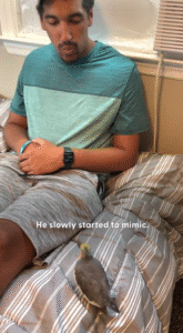 A sudden moment of brilliant perception. An epiphany that altered my entire plan. I was observing their daily interactions. Searching for a secret, a hidden opening. And then, the critical discovery was made. A simple, yet profoundly important fact. Kerri, his cherished and beloved human. Could not produce a single whistled sound. A clear communication gap existed there. The bird spoke a dialect she appreciated. But a language she was unable to speak. This was my unforeseen, golden opportunity. A way to connect on a special frequency. A private channel of communication. The cockatiel, walking on the table’s edge. Seemed to be awaiting something new. His world was loving, but had a void. I could offer him a unique experience. A shared melody and a secret song.. My pathway to his heart was through music. Not just any music, but his own music. The specific chirps and notes he knew. My mind raced with this newfound idea. I had finally found my secret advantage. It wasn’t food or toys or gentle pets. It was the simple power of mimicry. The unique ability to speak his tongue. A fresh plan began to take shape. A strategy built upon sound and harmony. I would learn his language for him.