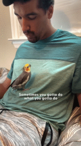 A quiet appeal hung in the space. My gaze conveyed a singular message. A humble request for an armistice. “Please, just grant me a chance.” He rested on my shoulder, a living crest. His closeness was a tentative first step. A very fragile connection was forming. We were inches apart, sharing the air. A silent dialogue of earnest intention. I needed him to see my true heart. My adoration for her was authentic. My motives were honorable and sincere. He was the guardian I had to win over. His acceptance was the key I needed. This little being held such immense power. His comfort was the highest priority. I offered him my unending patience. A silent vow to become a true friend. Not to replace, but to supplement. A new member of their unique family. His feathered crest twitched with thought. He was listening, watching, and sensing. The energy between us began to shift. From open hostility to cautious appraisal. This was a moment of pure humility. A grown man asking a bird for his blessing. Permission to cherish his best friend. The air was thick with unspoken hope. My request was simple and from the soul. Just let me into your trusted circle. Allow me to prove my dedication. Let our shared love for her unite us.
