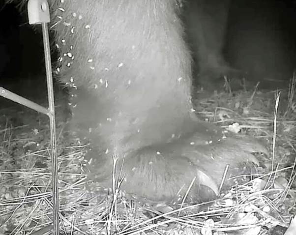 The bear sniffed the pole, pawed at the feeder, and in just a few seconds, the camera jolted violently. The final frame before the footage cut out showed nothing but the bear’s paw as the feeder crashed to the ground.