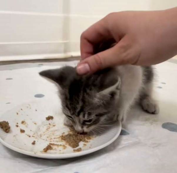 Back inside her apartment, Siena carefully cleaned the kitten’s face, wiping away the crust around her eyes. She then offered some leftover cat food she had from feeding local strays.