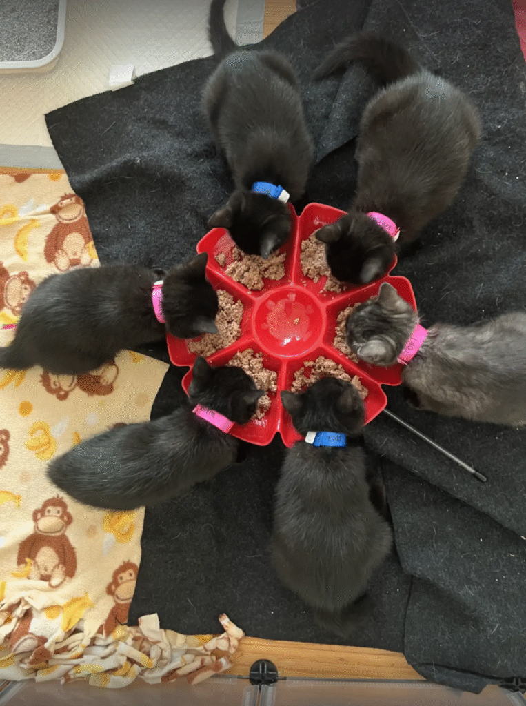 In the two weeks since Erielle ate them into her home, the gibs have thrived. Each bone is healthy, energetic, and showing off a personality of their own.Toki has the loudest churr, fire up his motor the moment he’s picked up.Kaskade and Zedd are the cuddlers, happiest when coiled up in a stage or put away under a mask.Kaytra marches to the beat of her own barrel — independent, curious, and confident.wimp and Partyboy are the wrestlers of the group, tumbling across the bottom in endless rounds of alley cat play- fighting.For Erielle, the experience has been both demanding and satisfying. Six gibs mean constant feeding, waste box cleaning, and keeping an eye on mischievous paws that love to climb, hurdle, and explore. But every challenge is overbalanced by the joy of watching them grow stronger and further confident each day.“ It’s so satisfying and so delightful to be with them, ” she said.