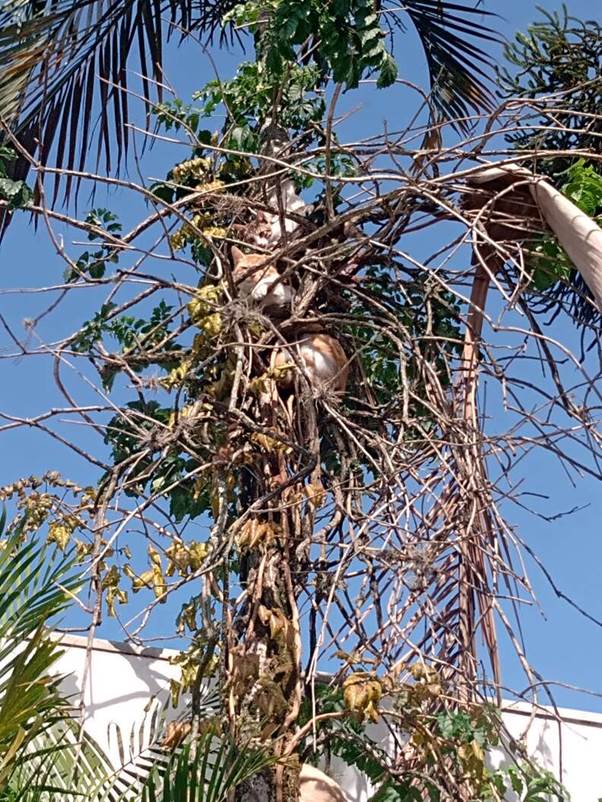 After recovering from her initial surprise, Santos couldn’t resist pulling out her phone to capture the unusual scene. The photos she later shared online delighted countless viewers, many of whom jokingly called it a “cat tree” in the most literal sense of the term.