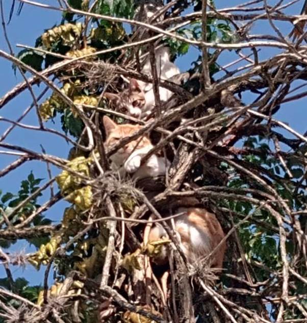 Though Santos couldn’t stay long — after all, she was on her way to work — the encounter lingered in her mind long after she walked away. The cats, still climbing and playing in the branches, carried on as if nothing unusual had happened. But for Santos, the experience transformed what could have been just another uneventful commute into something extraordinary.